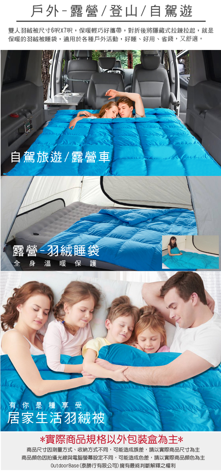 又再強力研發推出-“高原藍羽絨被睡袋” 巧妙的將羽絨被和睡袋合而為一,讓睡袋不再只有露營可以使用。